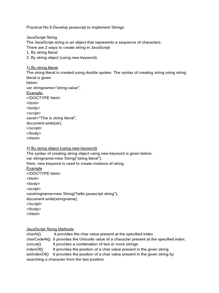 Practical No-5.Develop javascript to implement Strings.