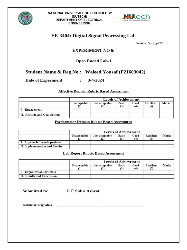 Student Name & Reg No : Waleed Yousaf (F21603042)