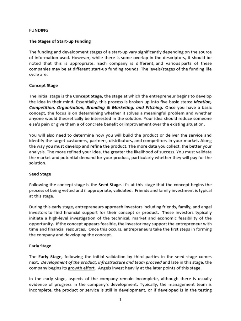 The funding and development stages of a start-up vary significantly depending on the source