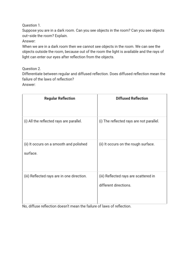 Differentiate between regular and diffused reflection. Does diffused reflection mean the