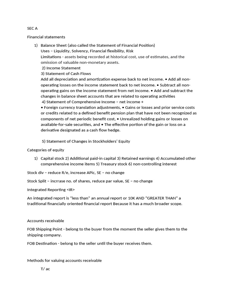 1) Balance Sheet (also called the Statement of Financial Position)