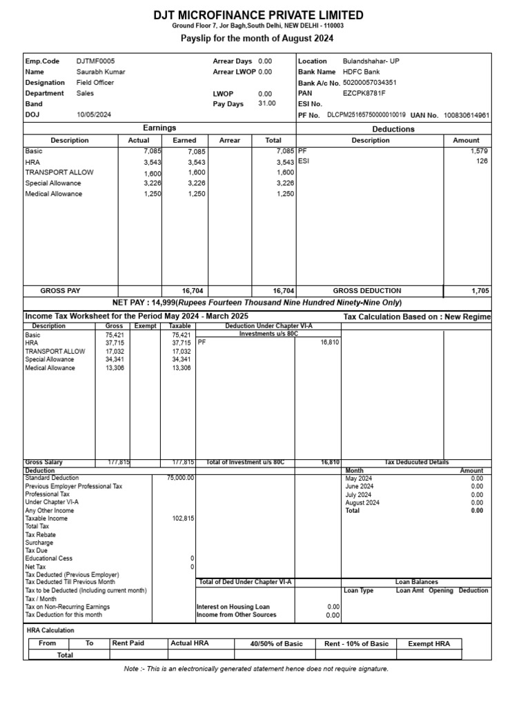Name Saurabh Kumar Arrear LWOP 0.00 Bank Name HDFC Bank