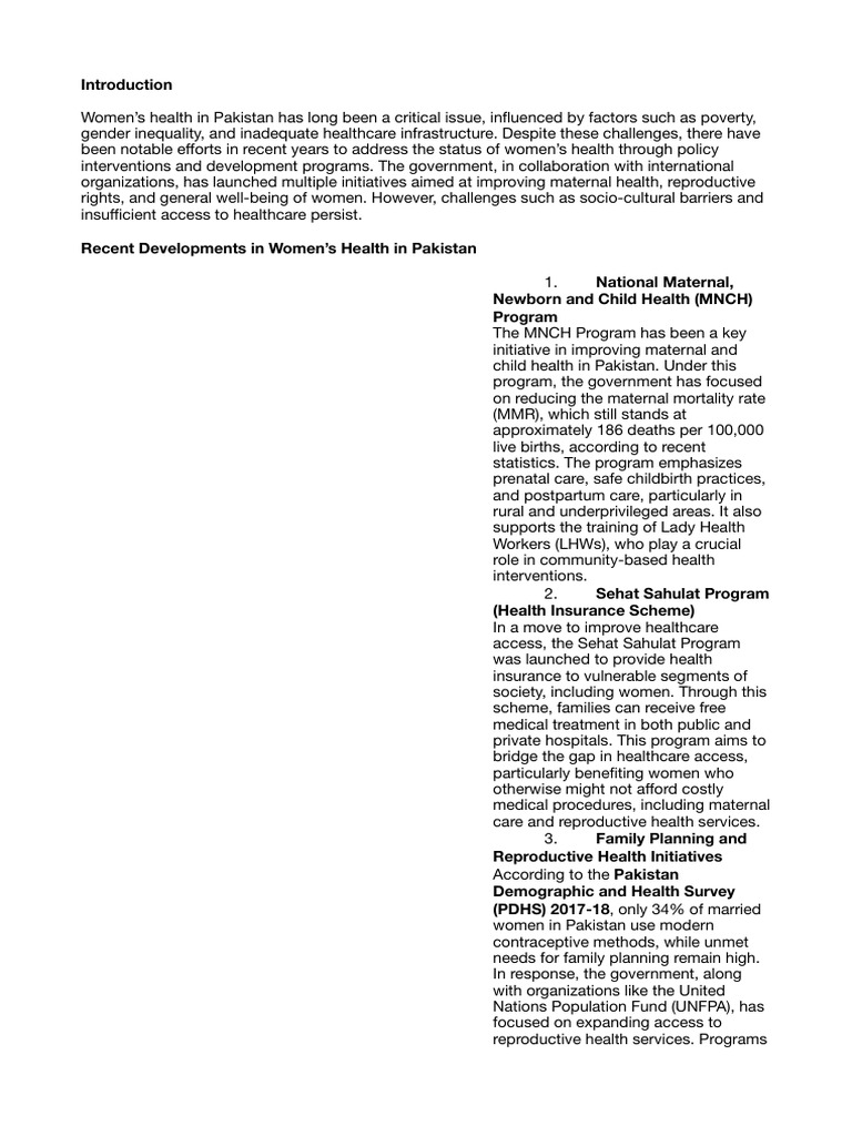 Women’s health in Pakistan has long been a critical issue, in uenced by factors such as poverty,