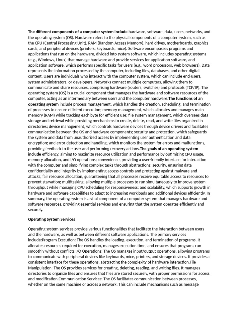 smoothly without conflicts.I/O Operations: The OS manages input/output operations, allowing programs