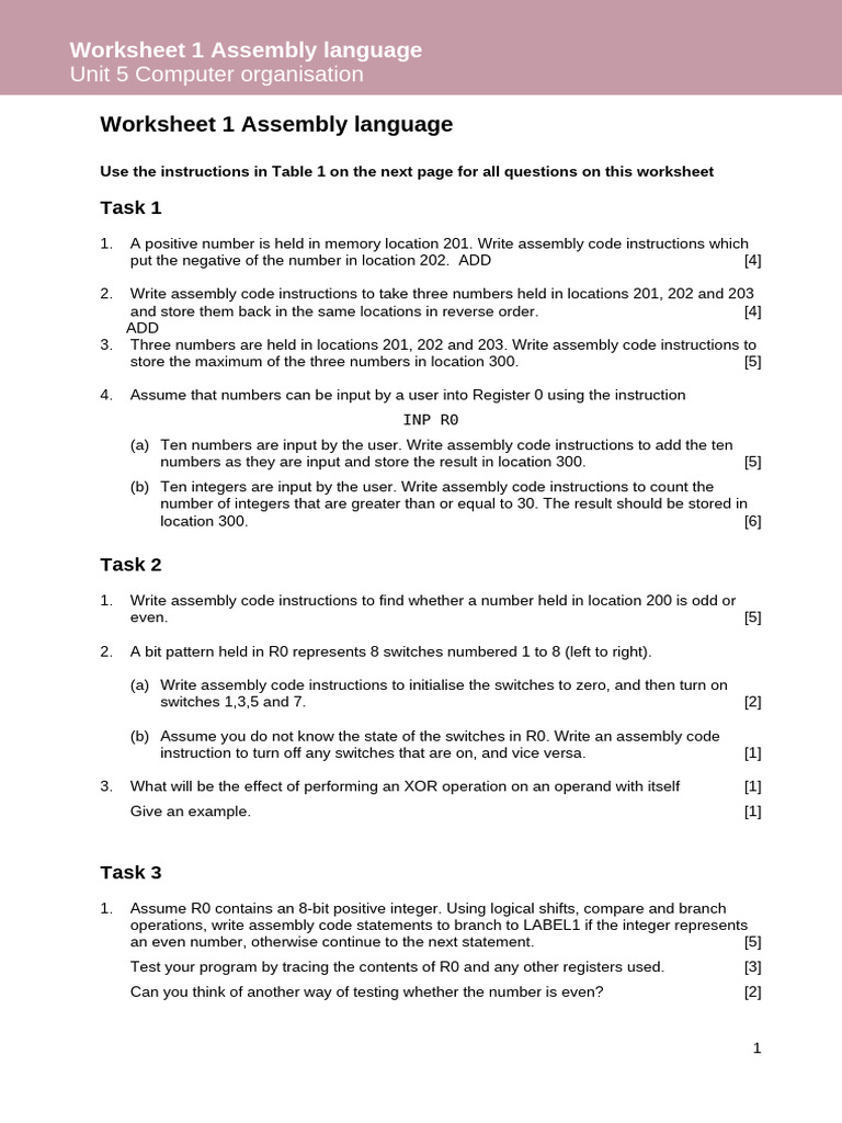1. Write assembly code instructions to find whether a number held in location 200 is odd or