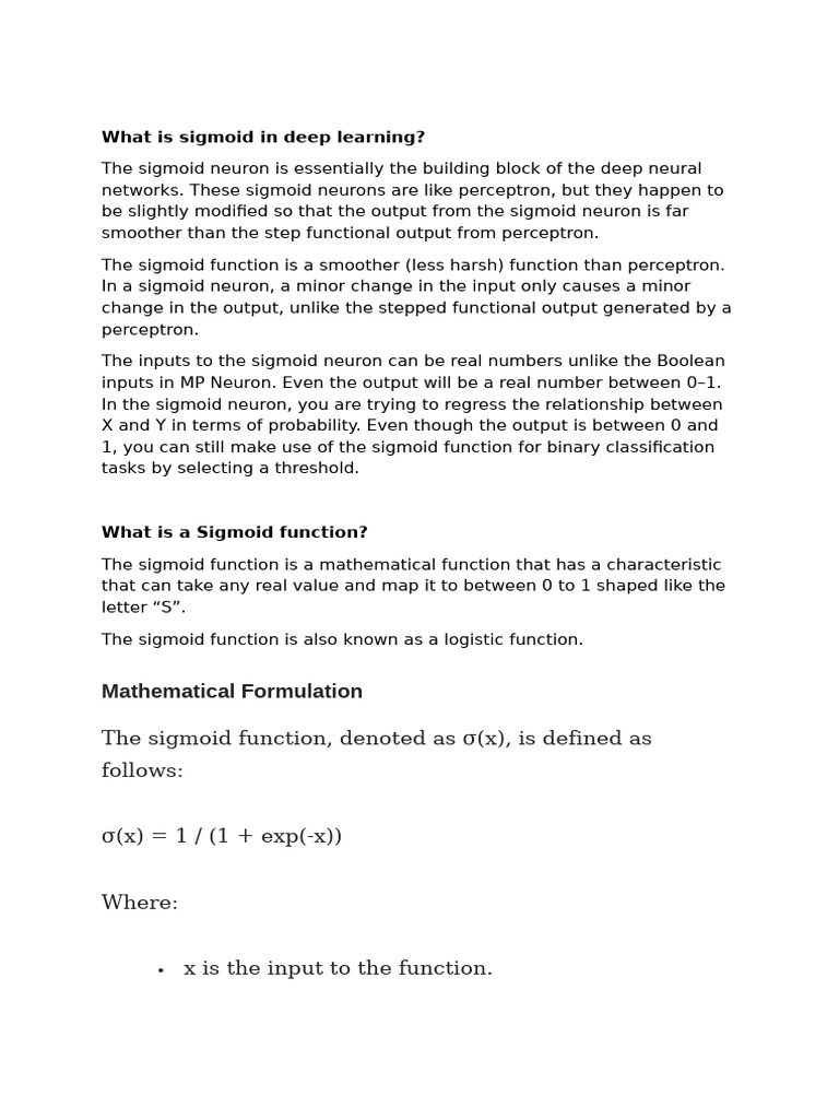 The inputs to the sigmoid neuron can be real numbers unlike the Boolean