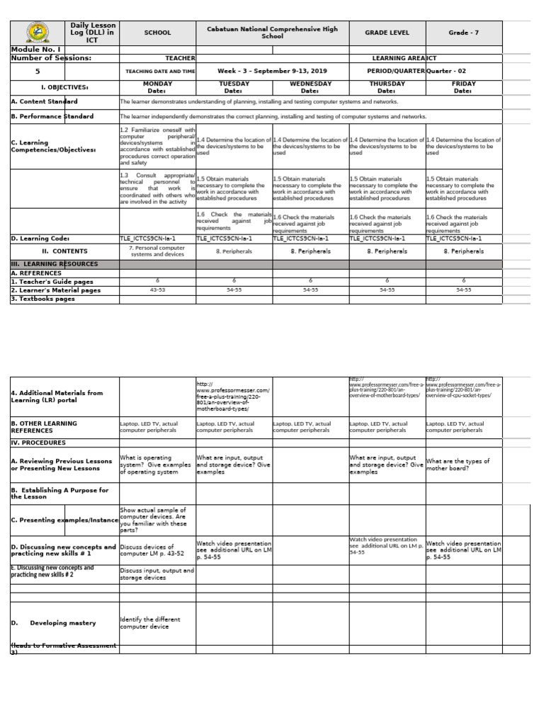 5 TEACHING DATE AND TIME Week – 3 – September 9-13, 2019 PERIOD/QUARTER Quarter - 02