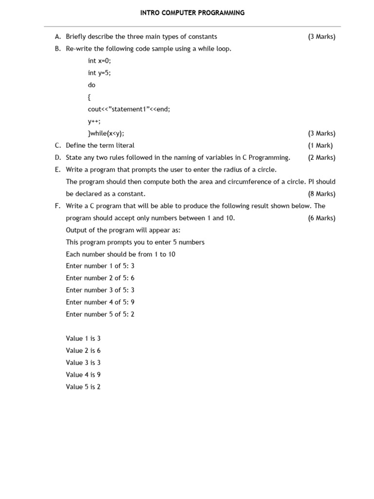 D. State any two rules followed in the naming of variables in C Programming. (2 Marks)