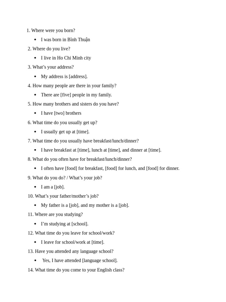 I often have [food] for breakfast, [food] for lunch, and [food] for dinner.