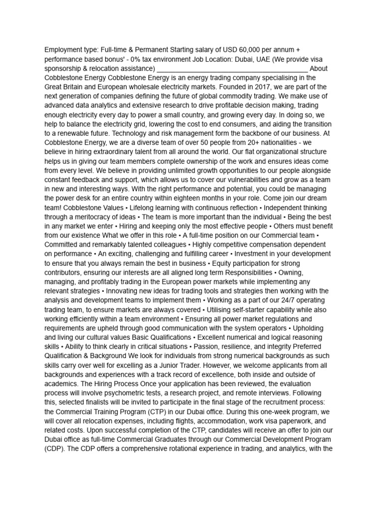 Dubai office as full-time Commercial Graduates through our Commercial Development Program