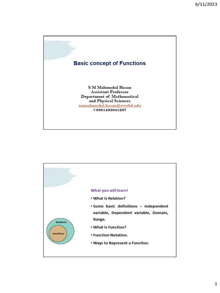 Example: 𝑦 = 𝑥 i.e., 𝑦 = ± 𝑥 is a relation.
