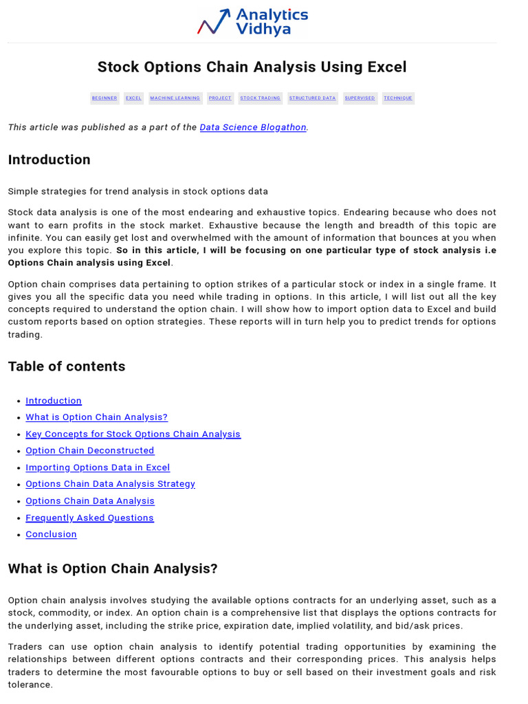 Article Url - https://www.analyticsvidhya.com/blog/2021/03/stock-options-chain-analysis-using-excel/