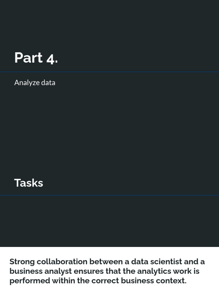 manager or a business analyst) provides insights expertise to decide how the data analysis will be