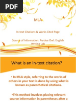 WORK CITED (OWL @ Purdue University is the go-to source for MLA info)