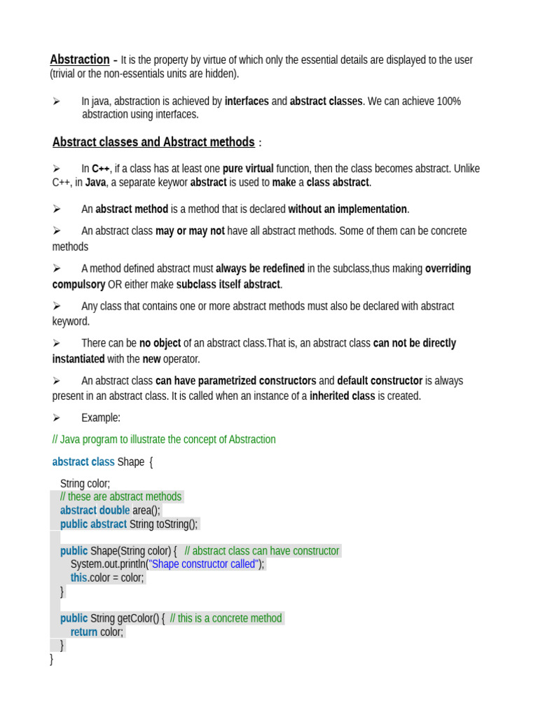 ➢ An abstract class may or may not have all abstract methods. Some of them can be concrete