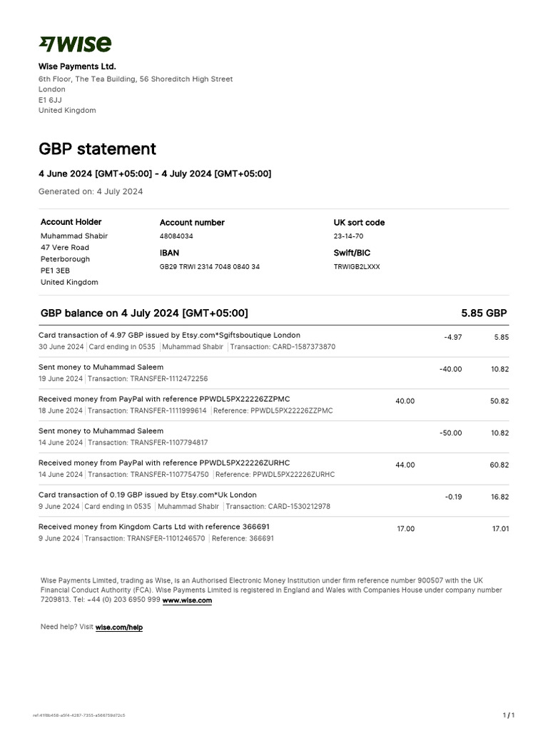 GBP balance on 4 July 2024 [GMT+05:00] 5.85 GBP