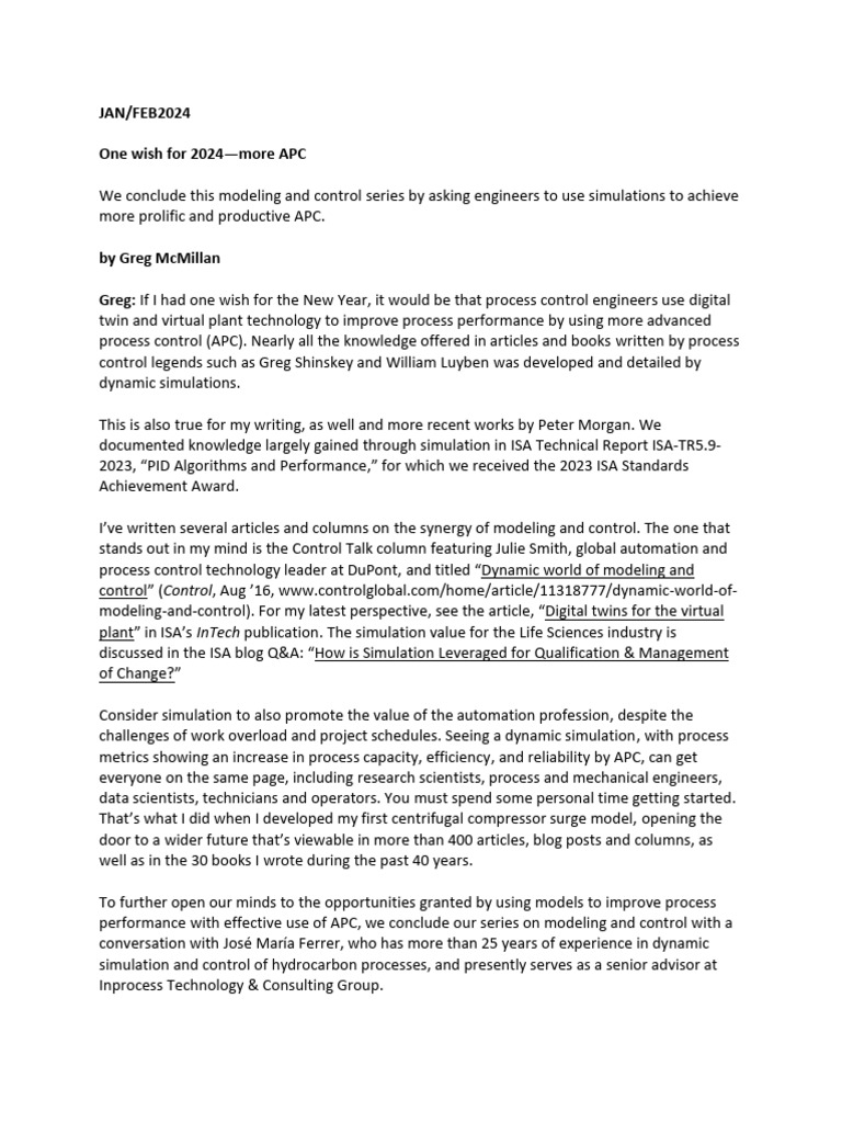 2023, “PID Algorithms and Performance,” for which we received the 2023 ISA Standards