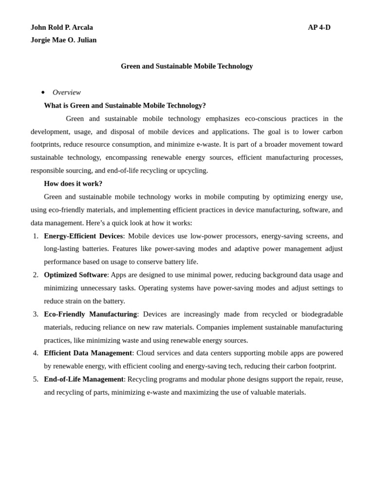 Green and sustainable mobile technology works in mobile computing by optimizing energy use,