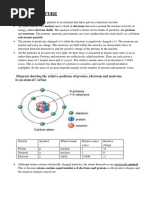 - Central nucleus containing positively charged protons and neutral neutrons.