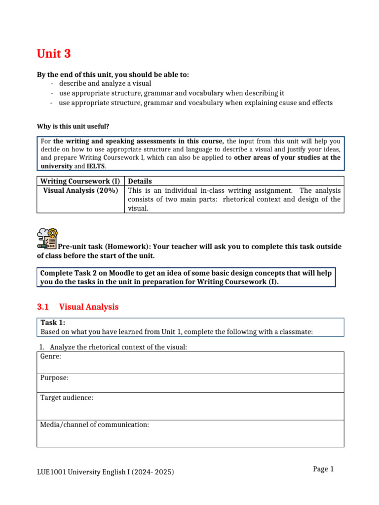 you do the tasks in the unit in preparation for Writing Coursework (I).