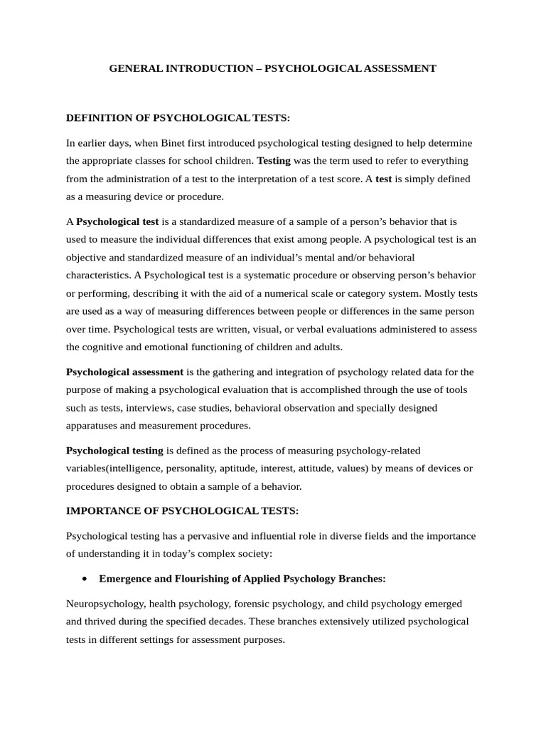 GENERAL INTRODUCTION – PSYCHOLOGICAL ASSESSMENT