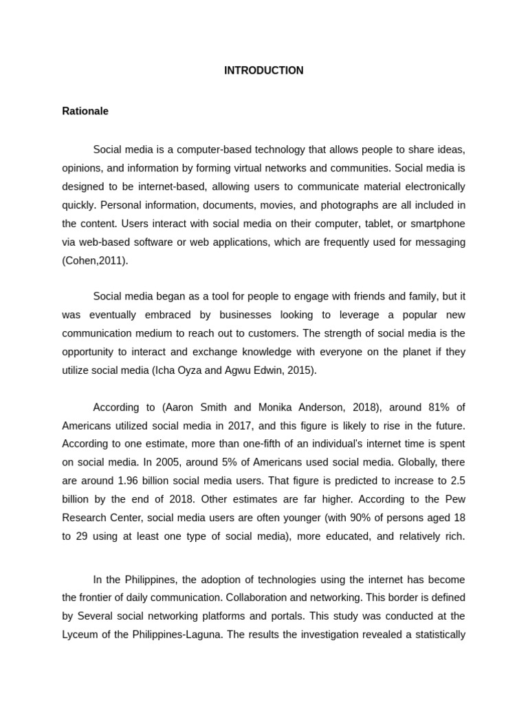 on social media. In 2005, around 5% of Americans used social media. Globally, there