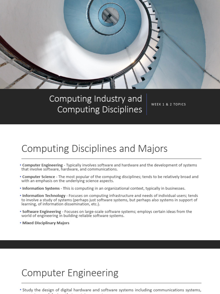 • Computer Science - The most popular of the computing disciplines; tends to be relatively broad and