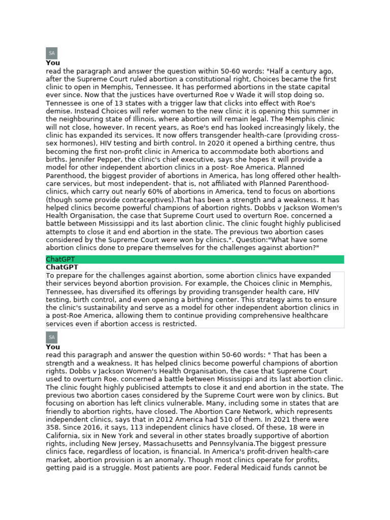 clinics. On the one hand, it has allowed them to become strong advocates for abortion