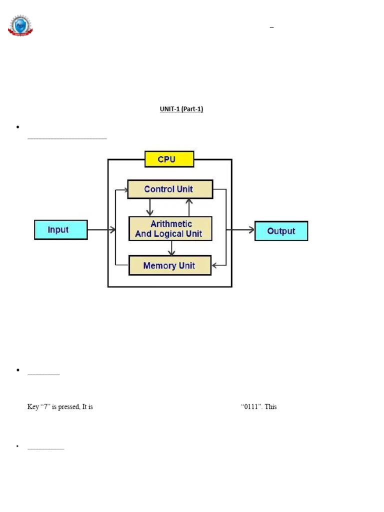 such as keyboard that information is stored in the Memory Unit. Memory unit is used for storing both Programs and