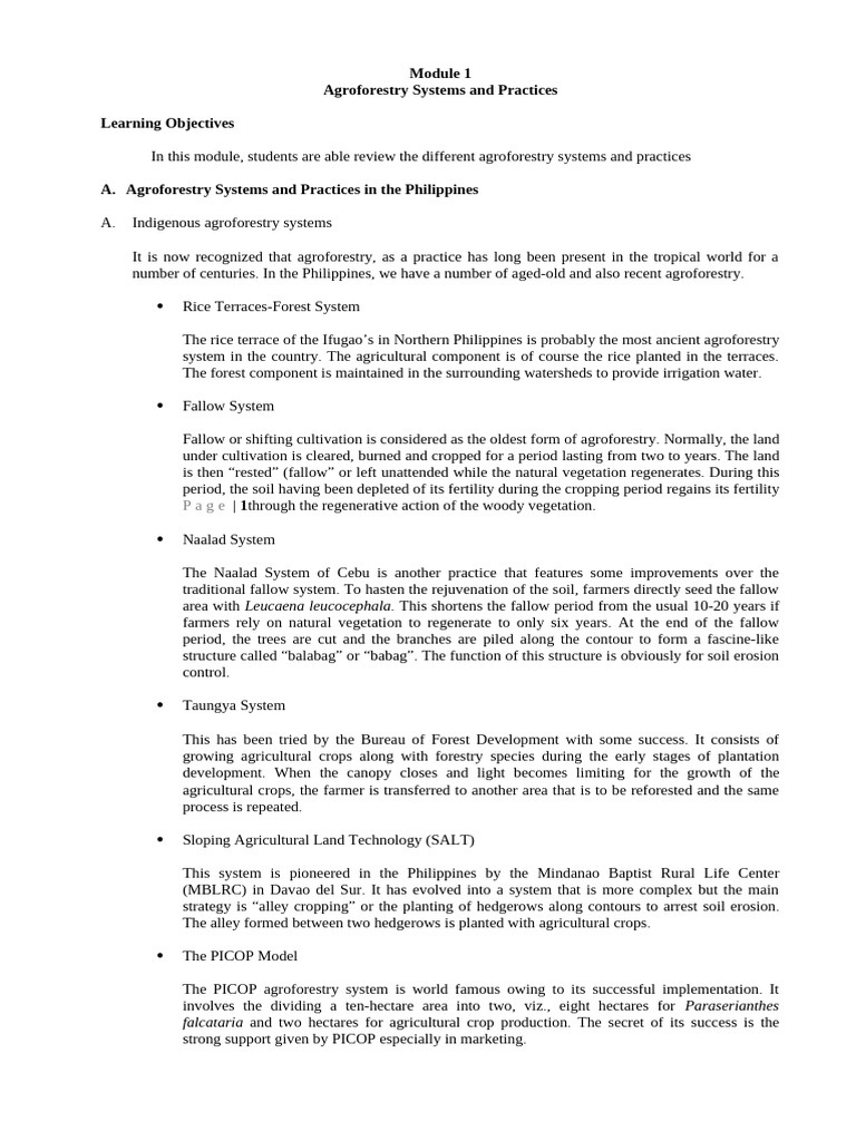 In this module, students are able review the different agroforestry systems and practices