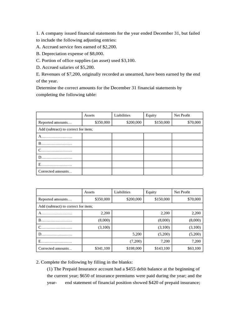 year- end statement of financial position showed $420 of prepaid insurance;