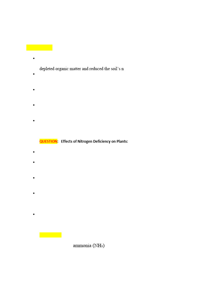QUESTION: Effects of Nitrogen Deficiency on Plants: