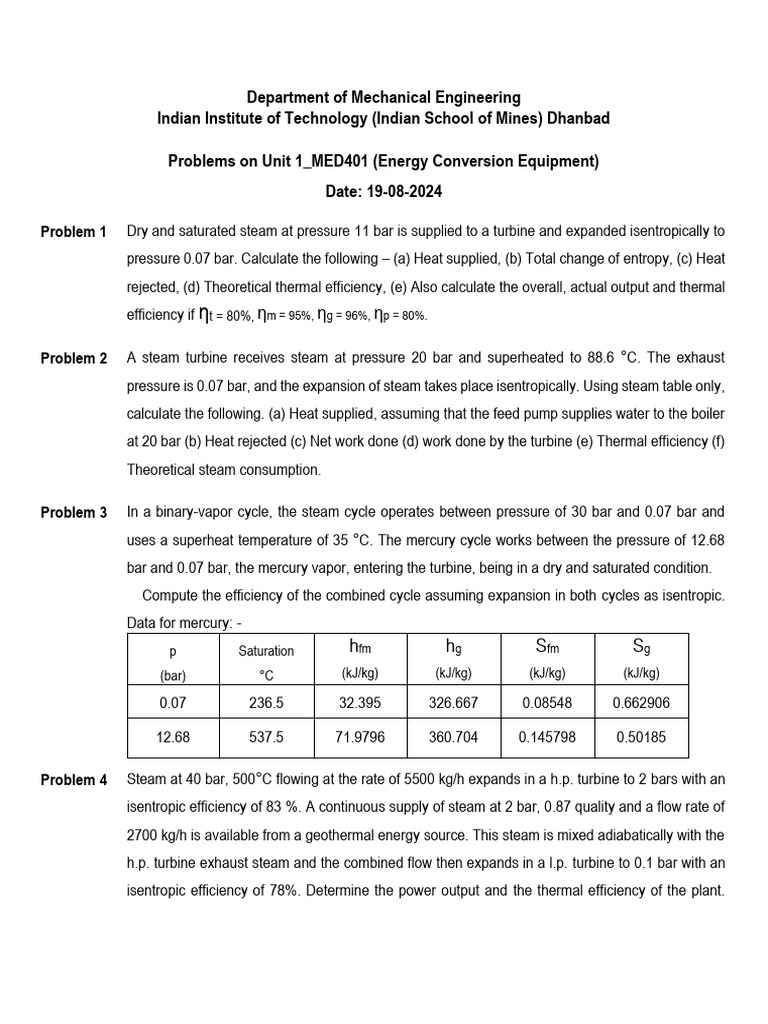 Problems on Unit 1_MED401 (Energy Conversion Equipment)