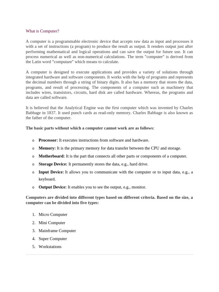 process numerical as well as non-numerical calculations. The term "computer" is derived from