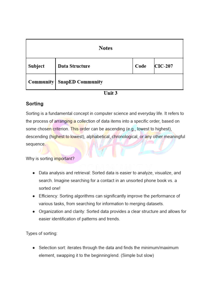 ● Organization and clarity: Sorted data provides a clear structure and allows for