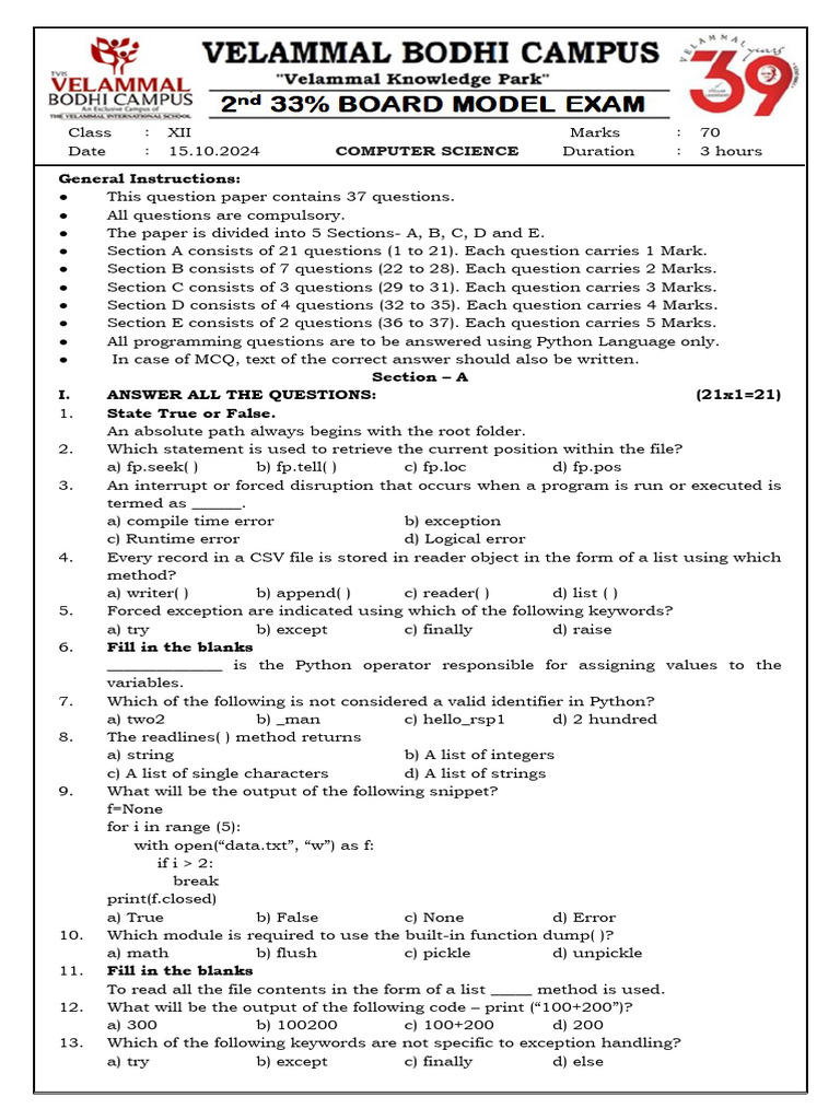 Date : 15.10.2024 COMPUTER SCIENCE Duration : 3 hours