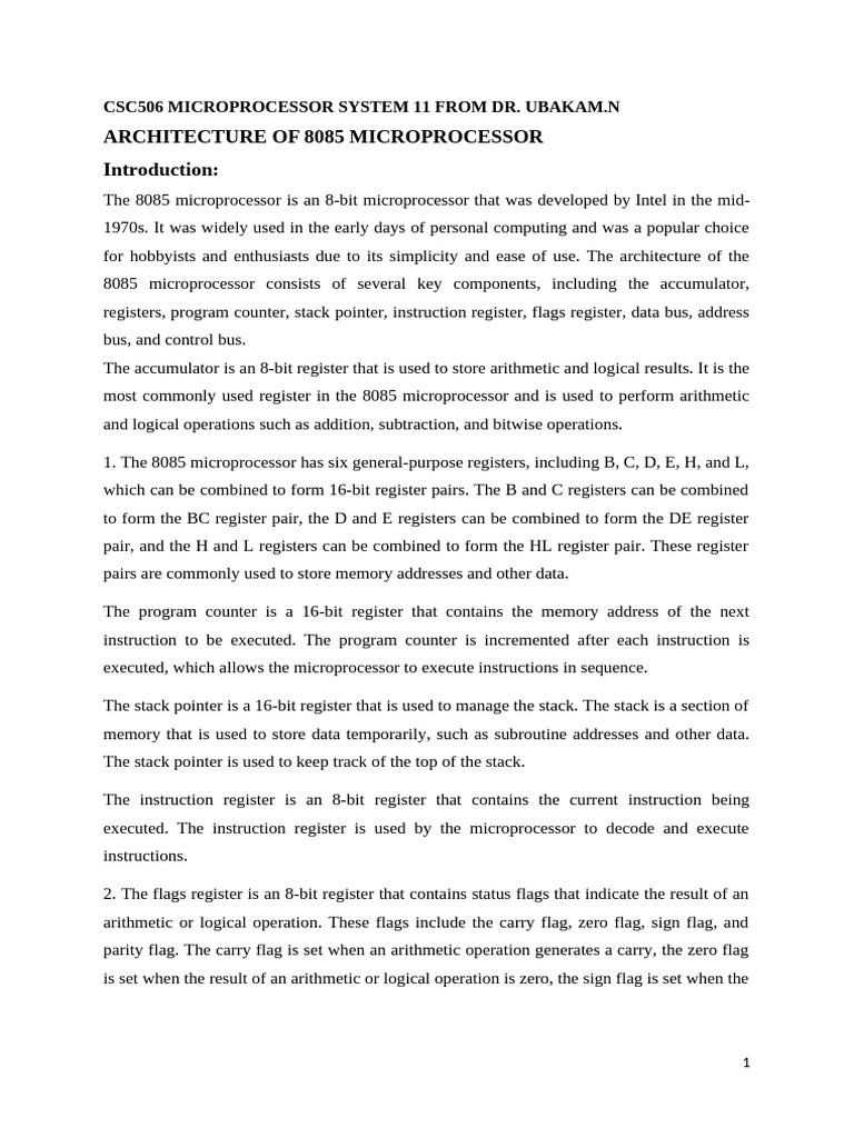 CSC506 MICROPROCESSOR SYSTEM 11 FROM DR. UBAKAM.