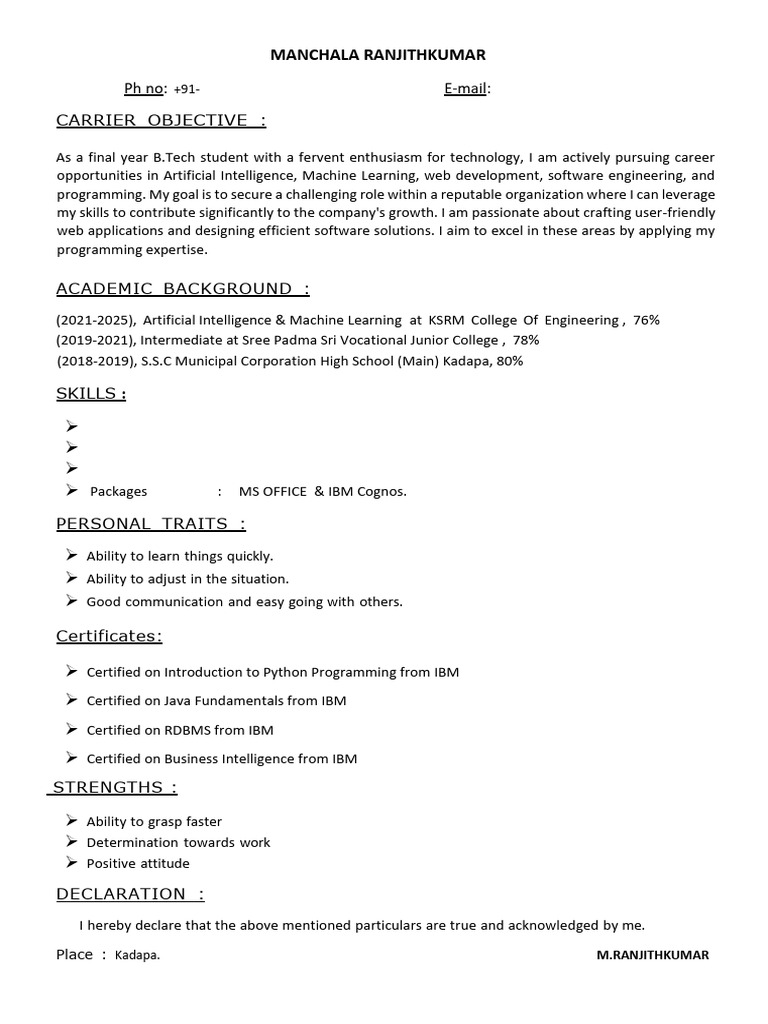 Ph no: +91-7093676500 E-mail: mhranjith5@gmail.com