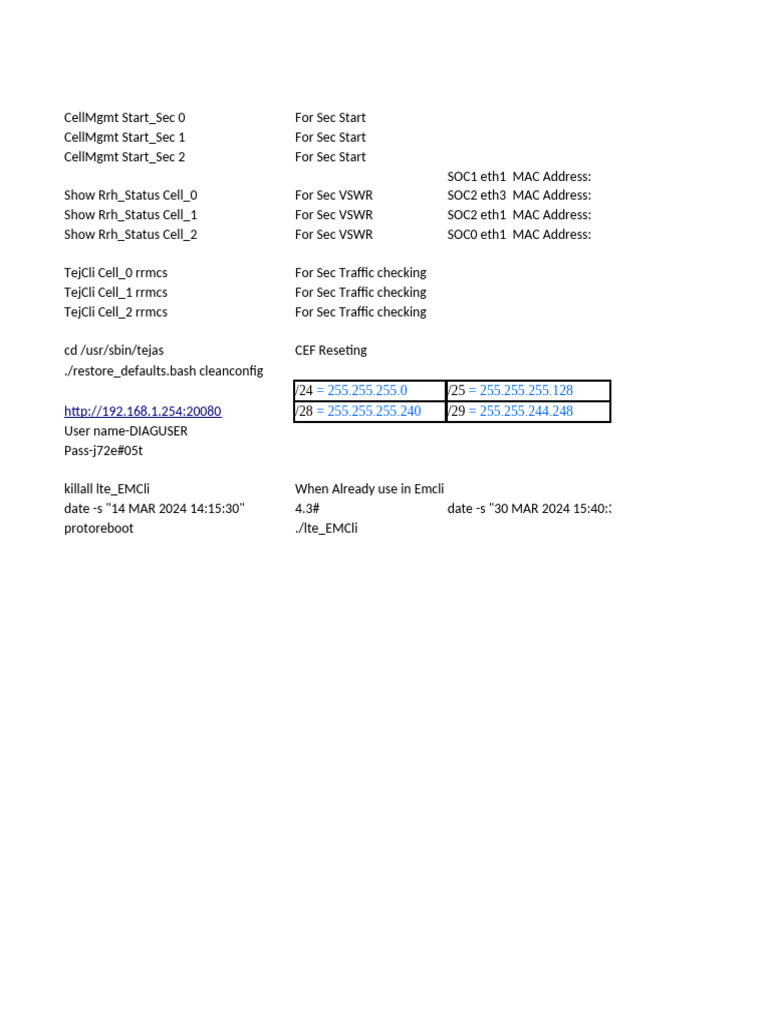 Show Rrh_Status Cell_1 For Sec VSWR SOC2 eth1 MAC Address: