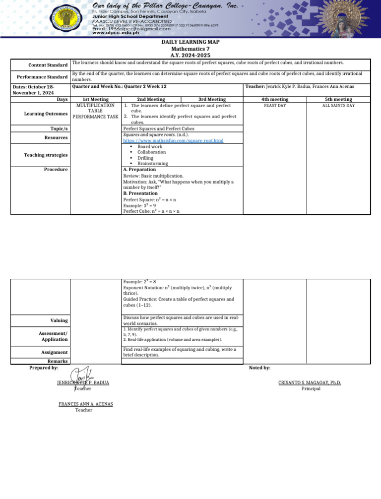 Topic/s Perfect Squares and Perfect Cubes