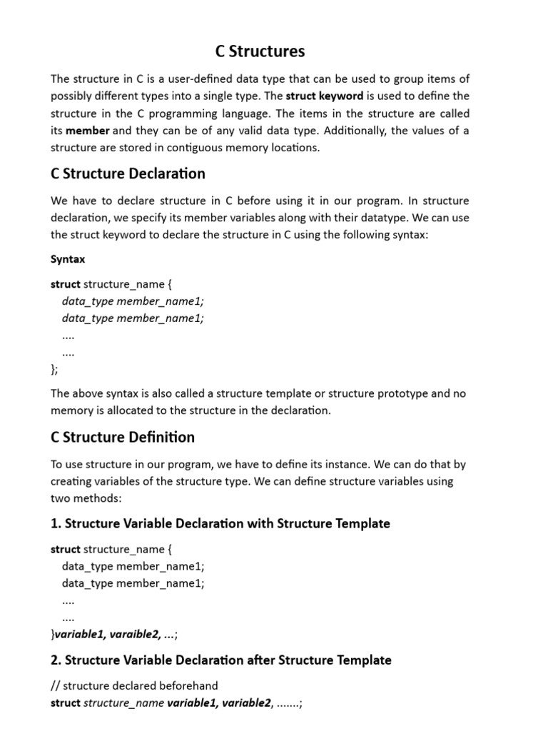 struct str1 var1 = { 1, 'A', 1.00, "c program" },