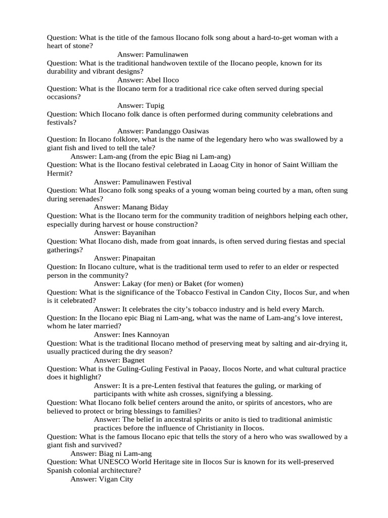Question: What annual festival in Ilocos Norte celebrates its cultural heritage, with highlights