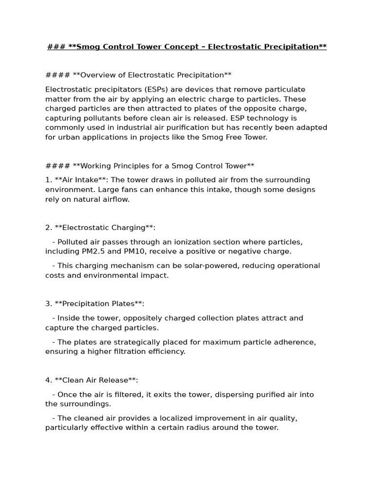 ### **Smog Control Tower Concept – Electrostatic Precipitation**