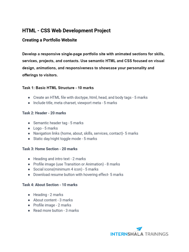 ● Ensure your HTML code is well-structured, and use comments to explain