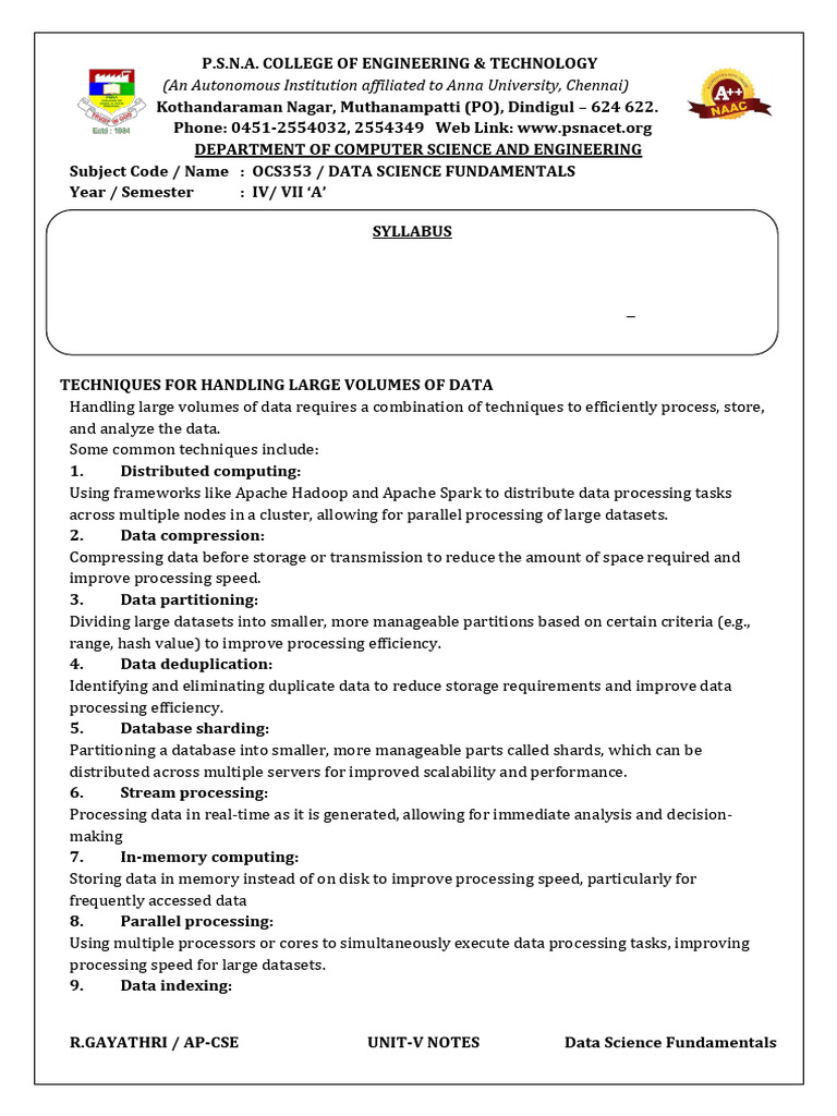 R.GAYATHRI / AP-CSE UNIT-V NOTES Data Science Fundamentals