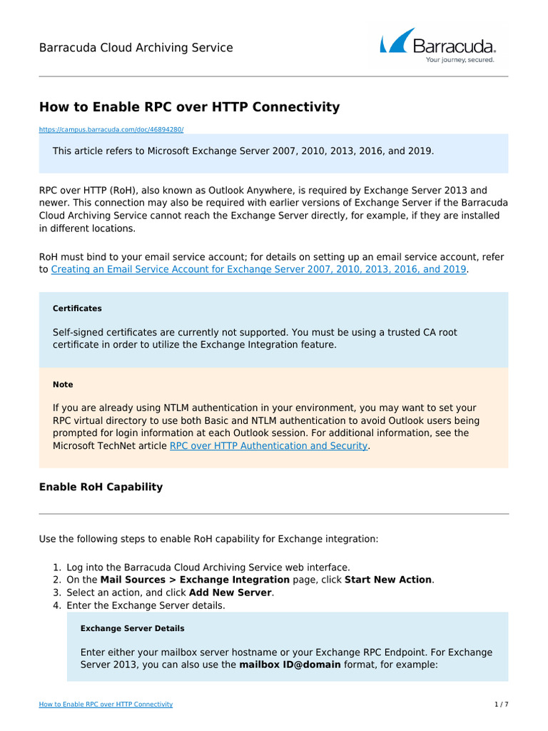 newer. This connection may also be required with earlier versions of Exchange Server if the Barracuda
