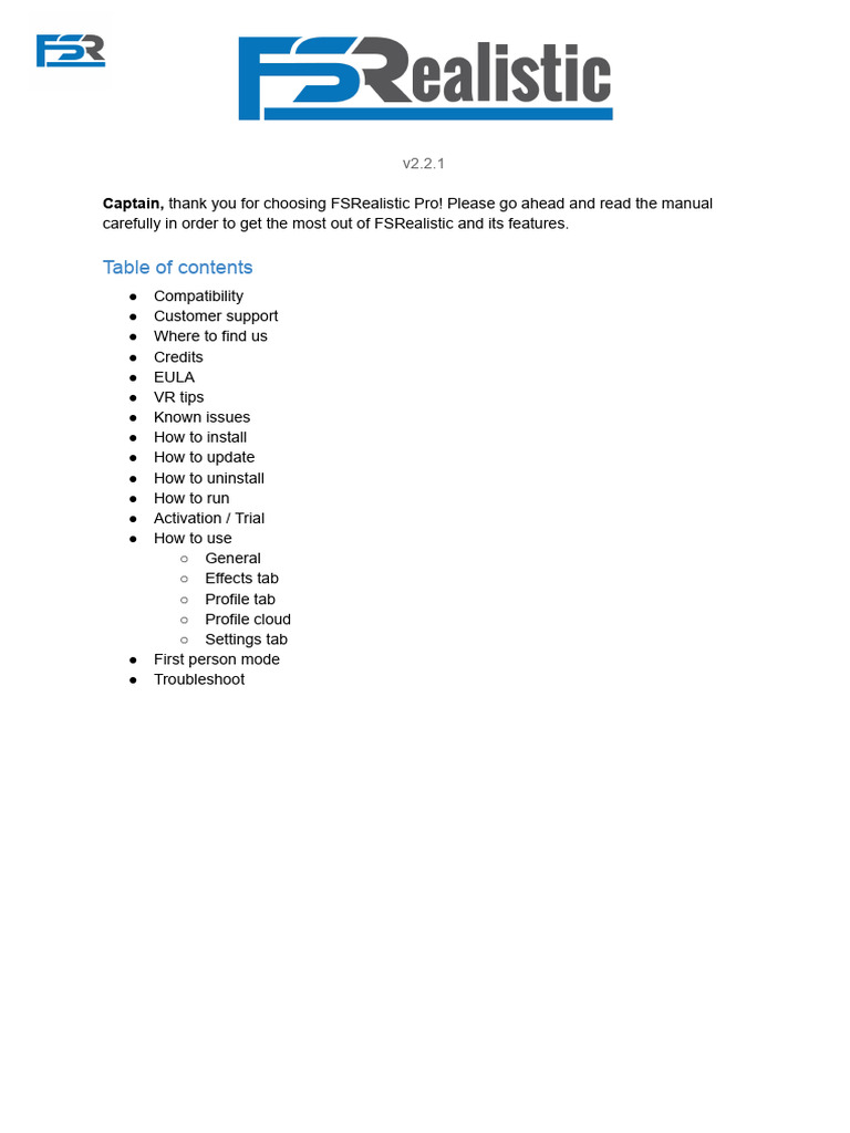 Captain, thank you for choosing FSRealistic Pro! Please go ahead and read the manual