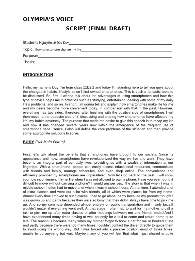 Hello, my name is Duy, I'm from class 11E2.2 and today I'm standing here to tell you guys about