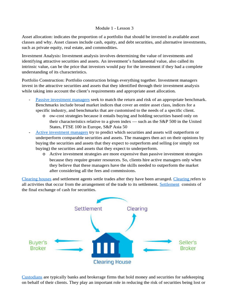 Clearing houses and settlement agents settle trades after they have been arranged. Clearing refers to