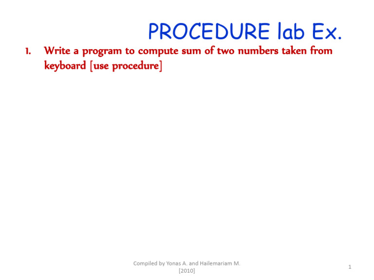 Laboratory Exercise 9: Procedure Calls, Stack and Parameters